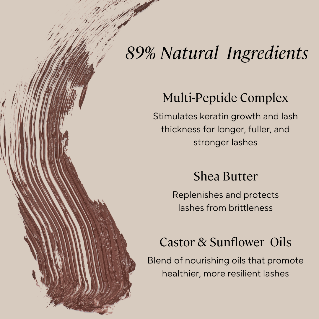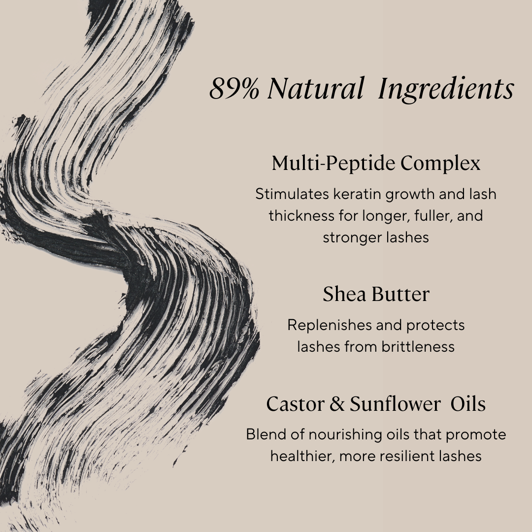 Made with 89% natural ingredients, it nourishes your lashes with a blend of peptides, oils, and butters.