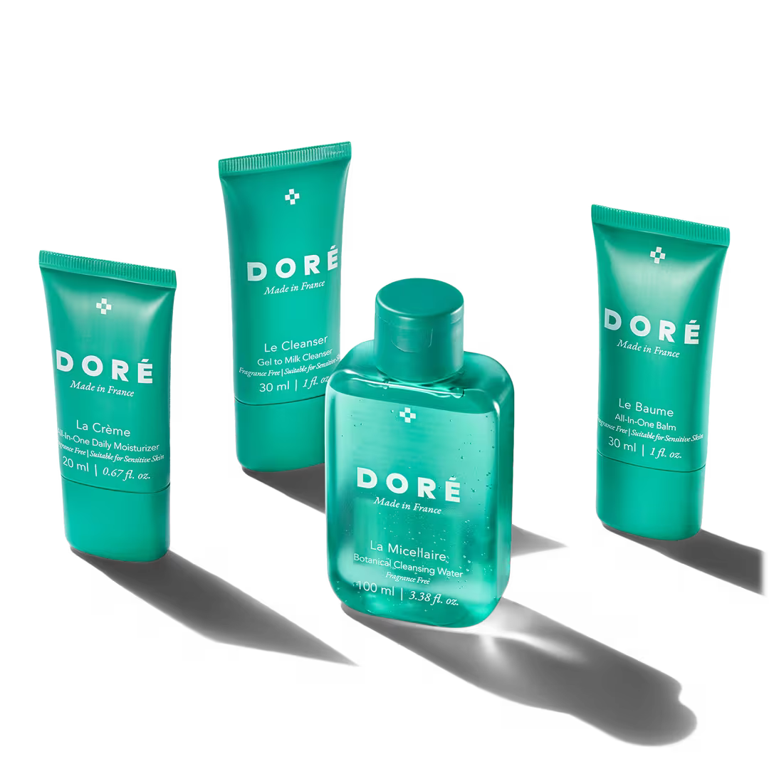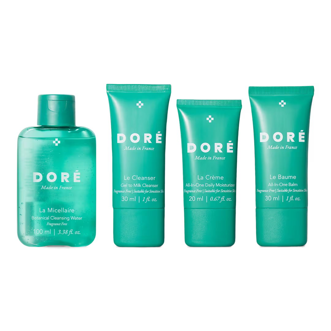 Your everyday essentials, beautifully simplified. Le Mini Set is a four-step skincare ritual designed to cleanse, hydrate, and protect all tucked into a chic, reusable pouch. Perfect for travel, gifting, or discovering Doré’s French approach to clean beauty.