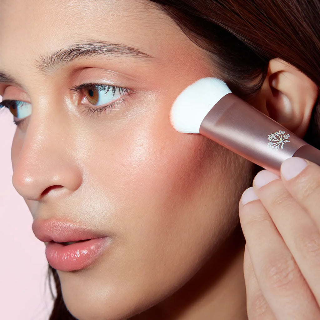 Use brush to blend product into skin with small circular motions for a smooth, natural results. To build up coverage or pigment, layer the product gradually, continuing to blend between each application.